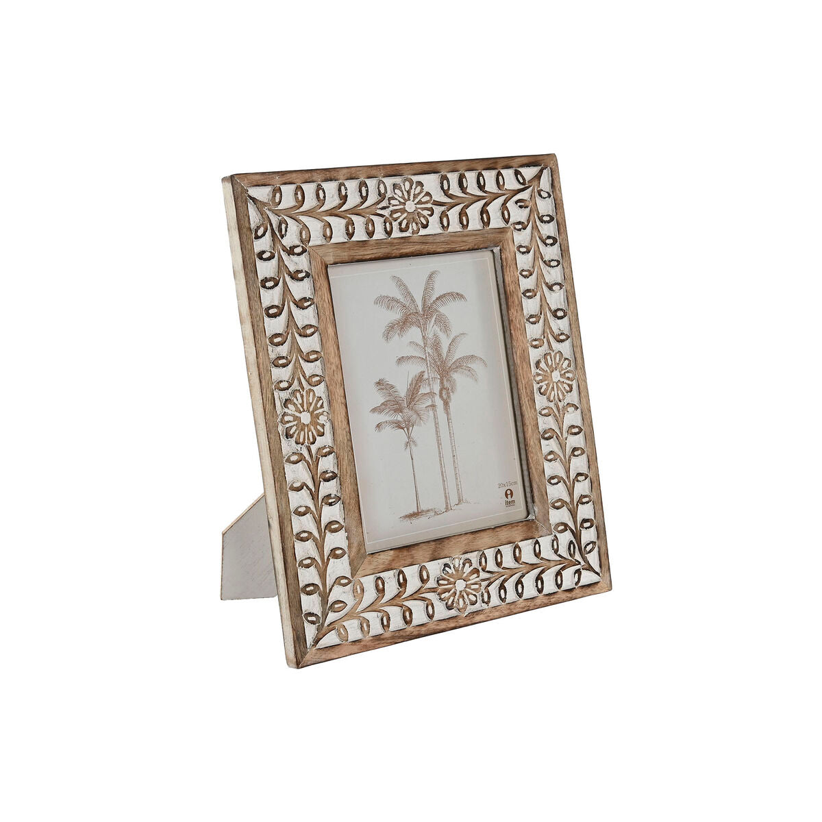 Fotoramme Home ESPRIT Hvid Natur Krystal Mangotræ Blomst Indianer mand 26,5 x 2 x 31,5 cm