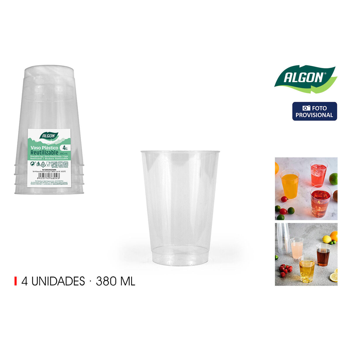 Glassæt Algon Plastik 380 ml 4 Dele (24 enheder)