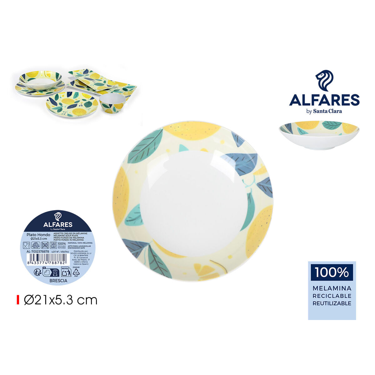 Dyb tallerken Alfares BRESCIA 21 x 5,3 cm (24 enheder)