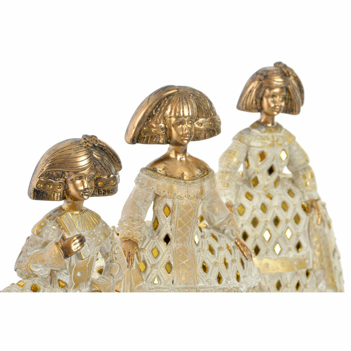Dekorativ figur DKD Home Decor Spejl Beige Gylden Harpiks Dame Traditionel (18 x 13 x 23 cm) (3 enheder)