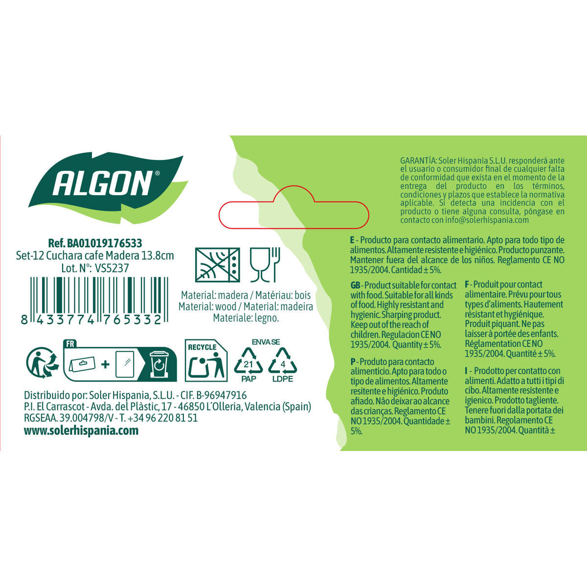 General Product Safety Regulations information: SOLER HISPANIA S.L.U. AVDA. DEL PLASTIC 17, OLLERIA, VALENCIA (SPAIN) 46850 - Olleria +34962208151 info@solerhispania.com https://www.solerhispania.com
