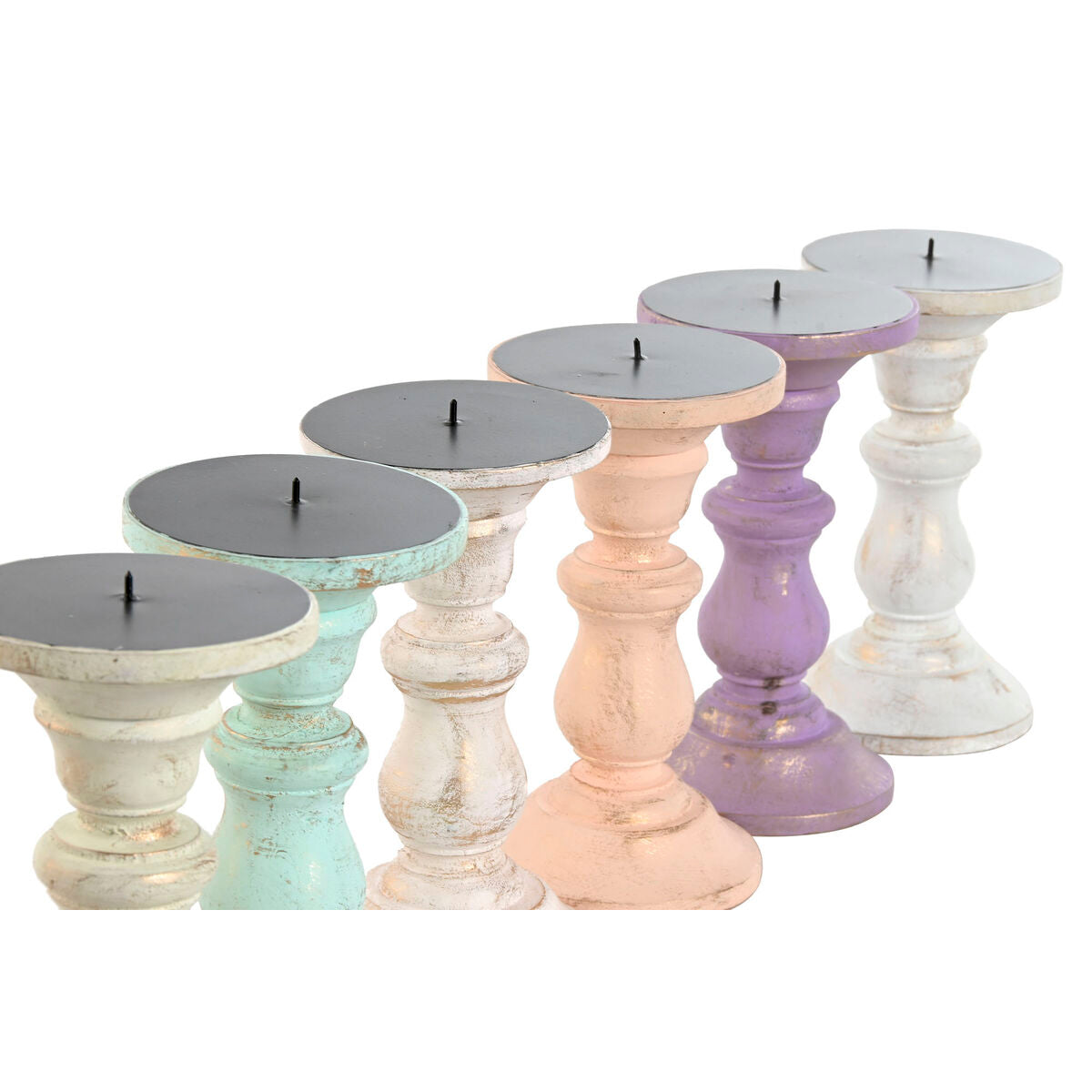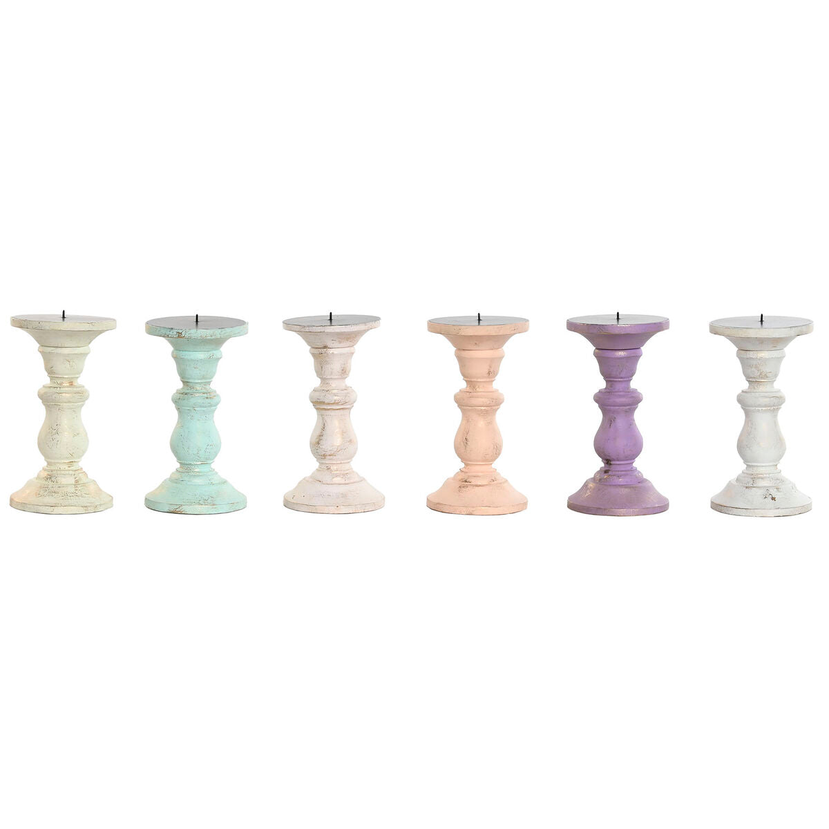 Kandelaber Home ESPRIT Gul Blå Grøn Pink Metal Mangotræ Shabby Chic 10 x 10 x 18 cm