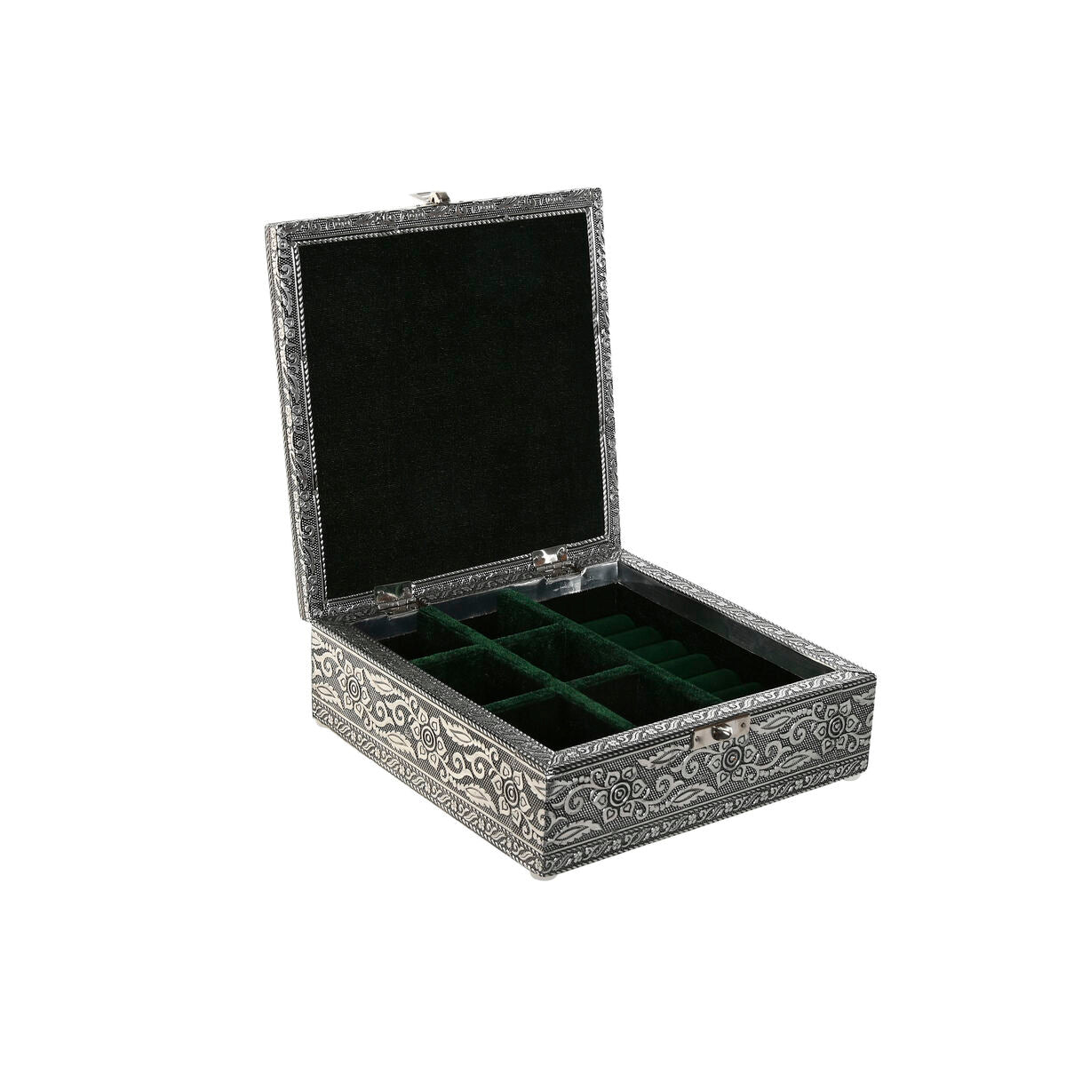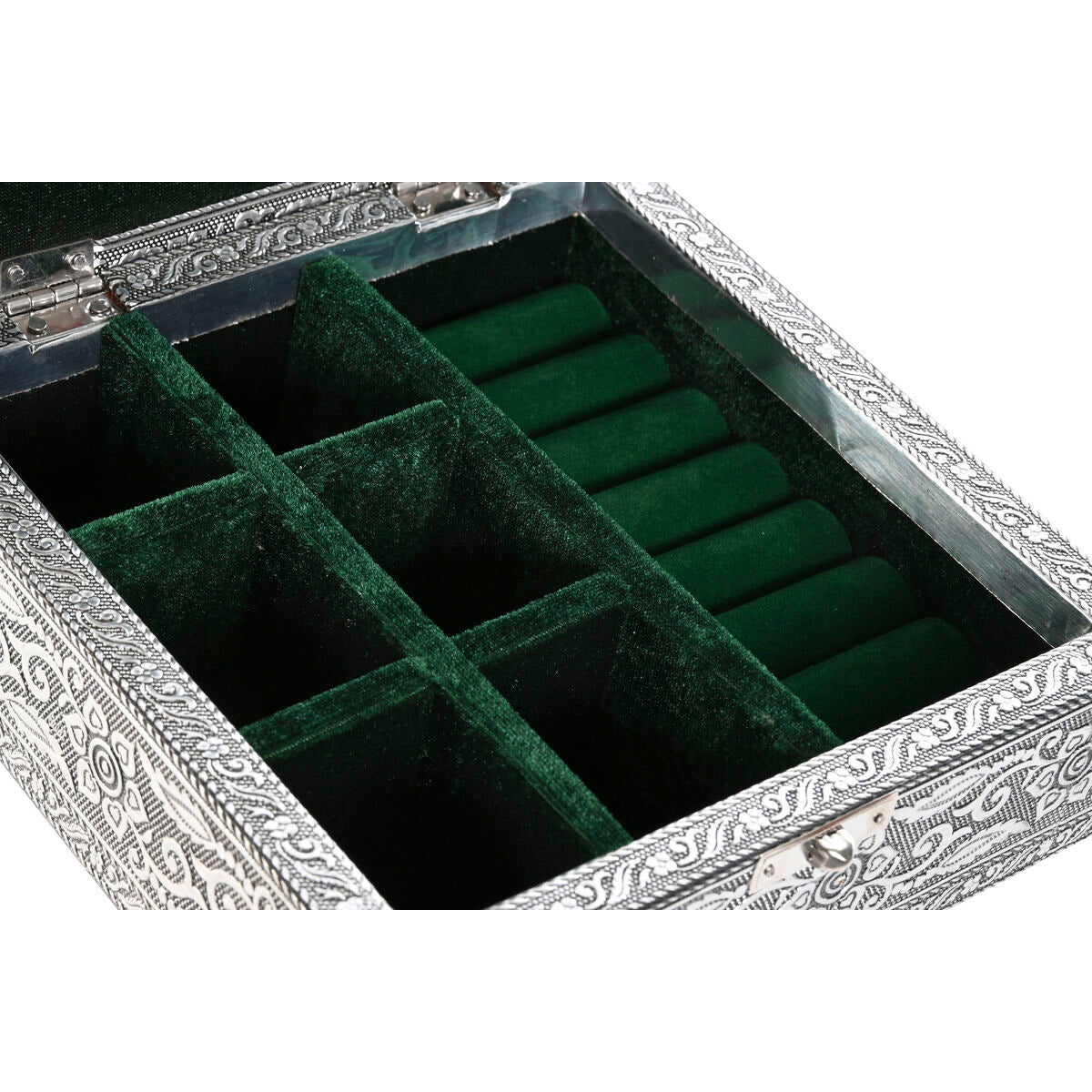 Hvis du vil tilbyde noget originalt til dit hjem, kan du gøre det med Smykkeskrin Home ESPRIT Grøn Sølvfarvet Træ Aluminium 18 x 18 x 6 cm.