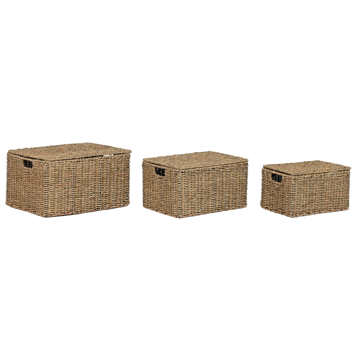 Kurvesæt Home ESPRIT Natur Metal Naturlig fiber Tropisk 46 x 36 x 26 cm (3 Dele)