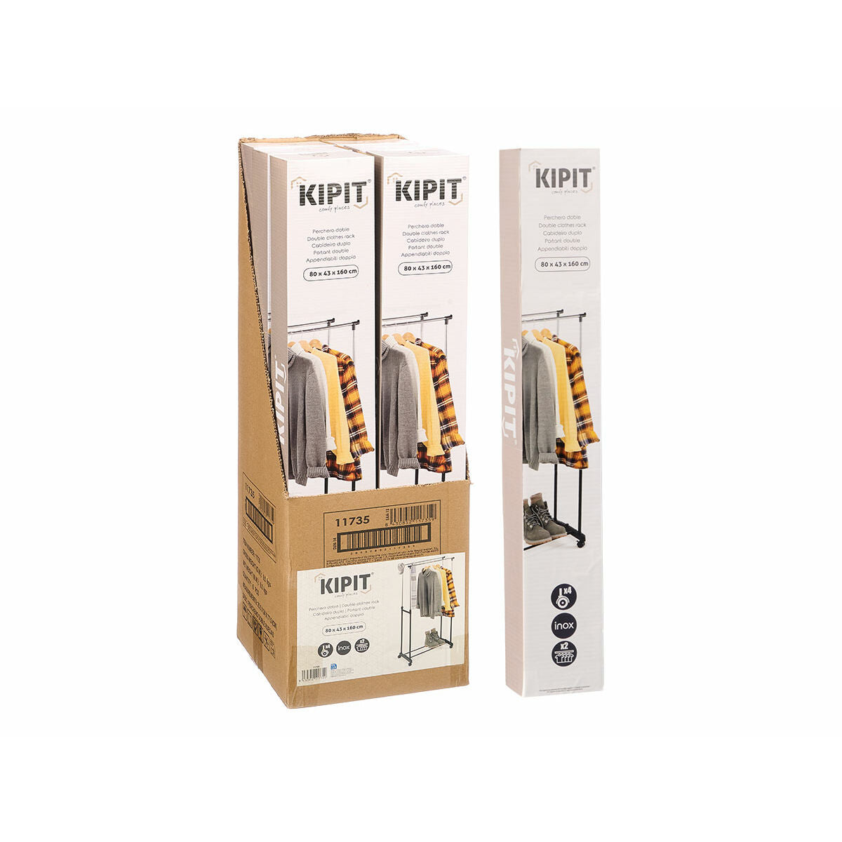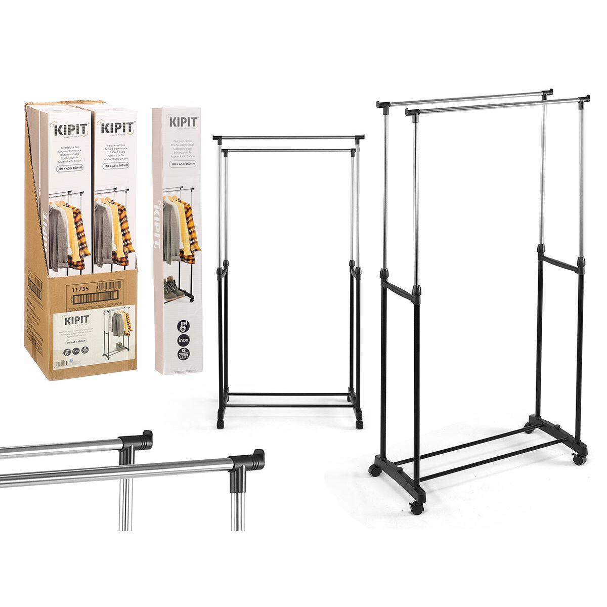 Hvis du vil tilbyde noget originalt til dit hjem, kan du gøre det med Stumtjener med hjul Kipit Sort Rustfrit stål Plastik 80 x 43 x 160 cm.