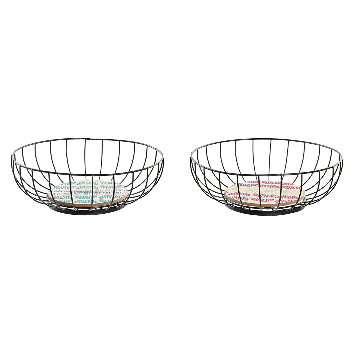 Frugtskål DKD Home Decor Blå Turkisblå Metal Træ MDF 28 x 28 x 11 cm (2 enheder)
