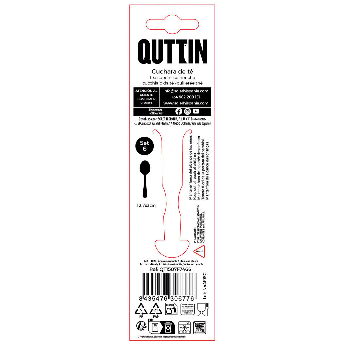 General Product Safety Regulations information: SOLER HISPANIA S.L.U. AVDA. DEL PLASTIC 17, OLLERIA, VALENCIA (SPAIN) 46850 - Olleria +34962208151 info@solerhispania.com https://www.solerhispania.com