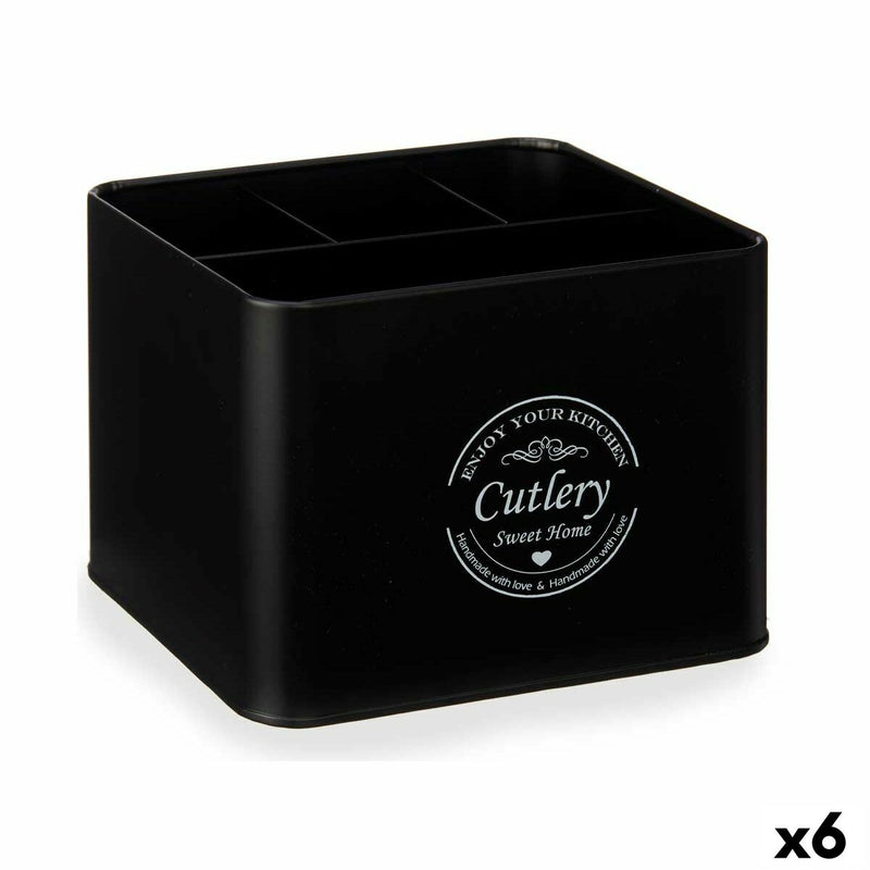 Kurv Bestik Sort Metal 18 x 13,3 x 15,3 cm (6 stk)